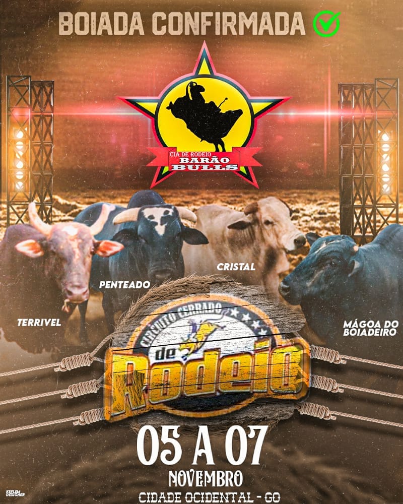 Segura peão! Um dos maiores eventos populares da região Centro-Oeste está de volta. É o Circuito Cerrado de Rodeio, que traz muitas atrações, de 5 a 7 de novembro, na Cidade Ocidental, com entrada franca e arrecadação de alimentos e agasalhos pela campanha "#Seja Solidário". Na entrada serão exigidos uso de máscara, cartão de vacina ou exame PCR negativo. Além de oferecer entretenimento à localidade e demais cidades do Distrito Federal e entorno, a festividade gera emprego e renda à população e promove artistas regionais. Espera-se que o evento atraia cerca de 30 mil pessoas, respeitando os protocolos sanitários do município.
